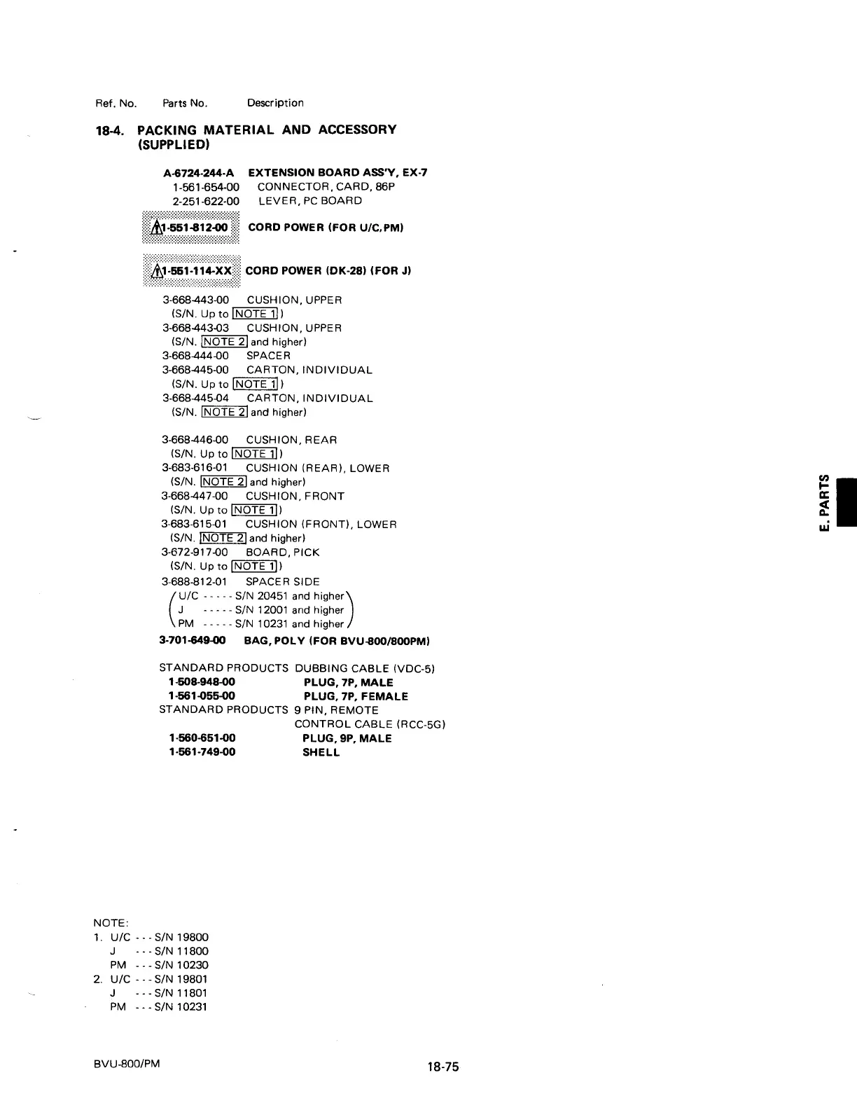 Sony BVU-800 - 18-4. PACKING MATERIAL AND ACCESSORY (SUPPLIED); Packing Material and Accessory Details