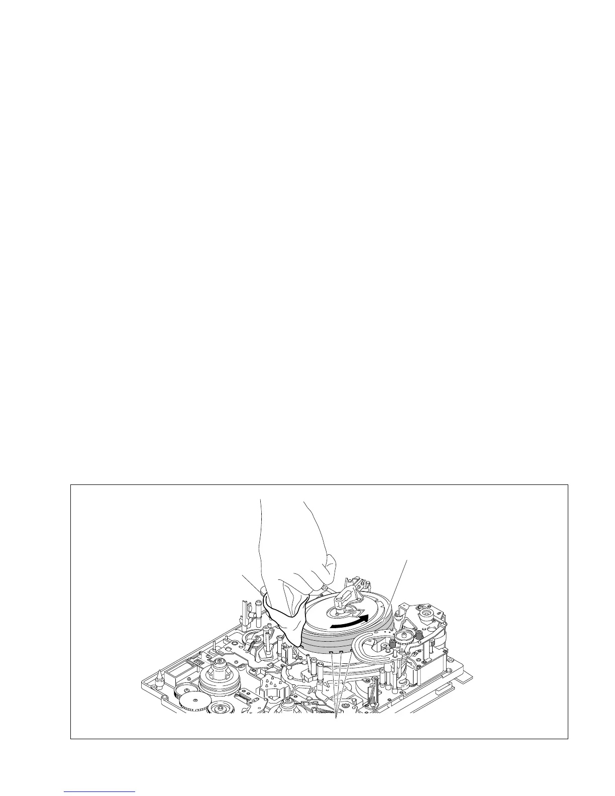 Be sure to rotate the upper drum counterclockwise and clean the video heads along the circumfer-