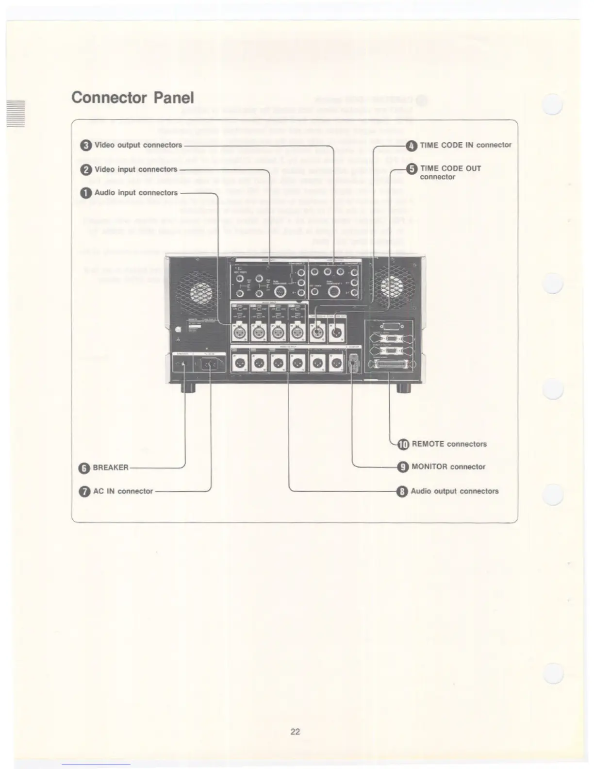 Sony BVW-75 - Connector Panel and Settings; Connector Panel Overview