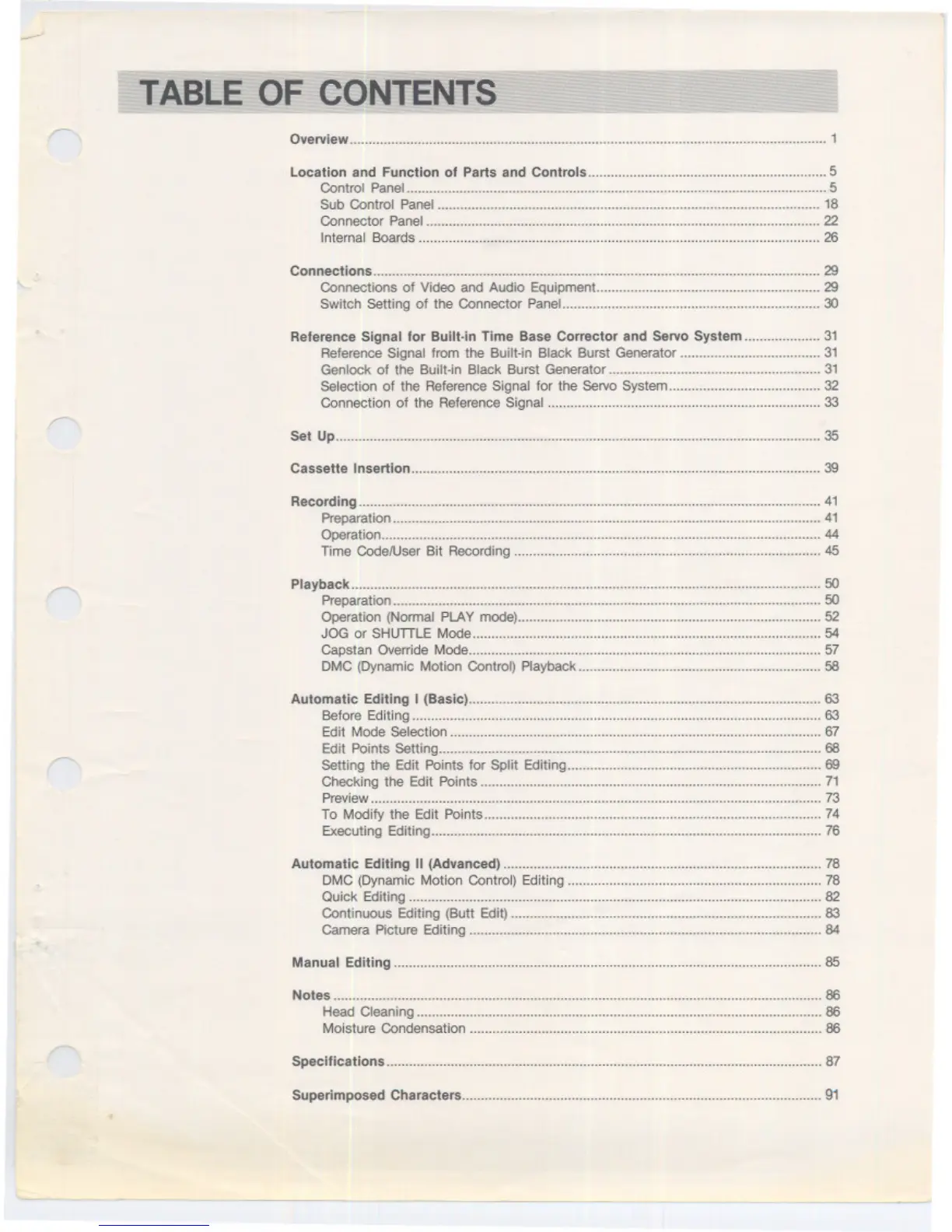 Sony BVW-75 - Table of Contents