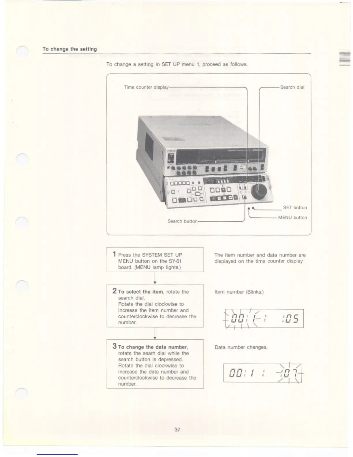 Sony BVW-75 - To Change the Setting