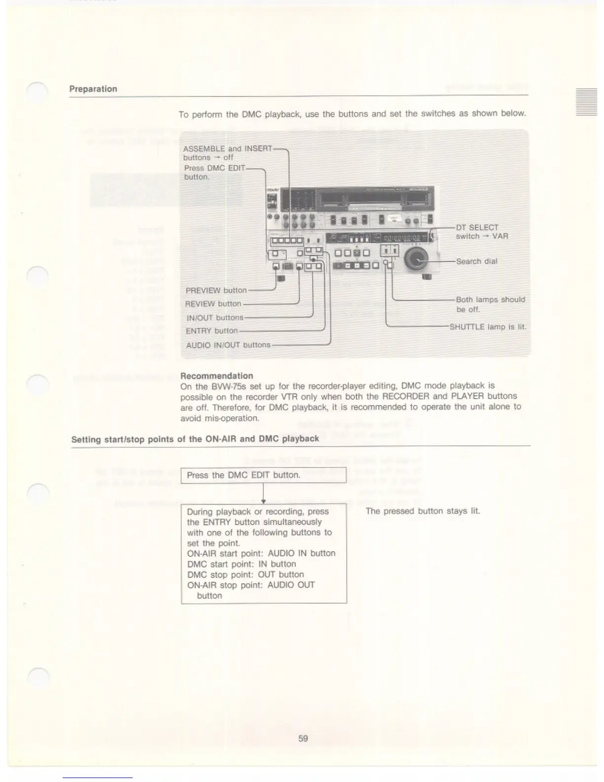 Sony BVW-75 - Setting Start;Stop Points of the On-Air and DMC Playback