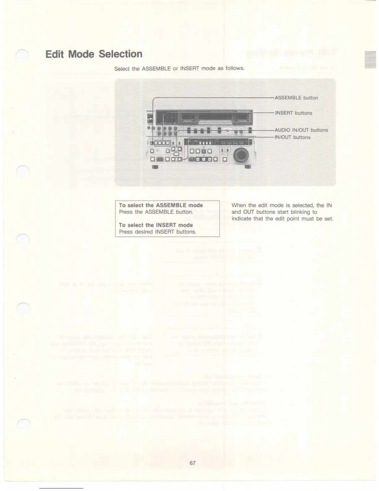 Sony BVW-75 - Edit Mode Selection