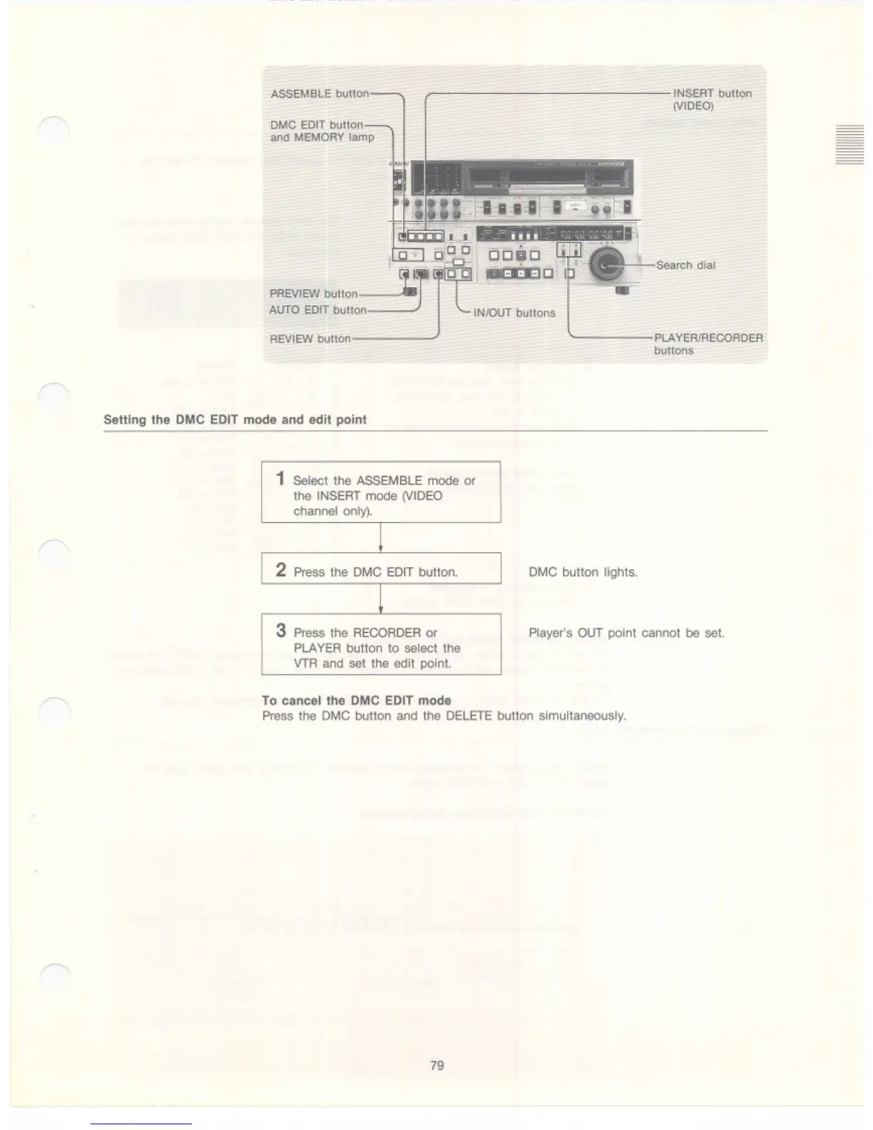 Sony BVW-75 - Setting the DMC EDIT Mode and Edit Point; To Cancel the DMC EDIT Mode