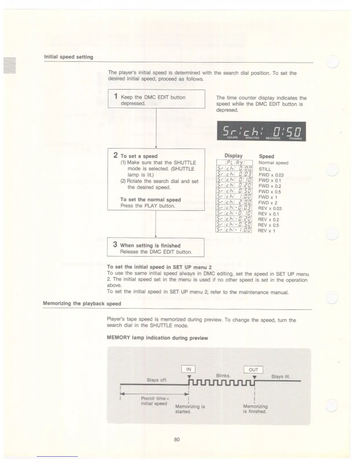 Sony BVW-75 - The Players Initial Speed Setting; To Set the Initial Speed in Set up Menu 2