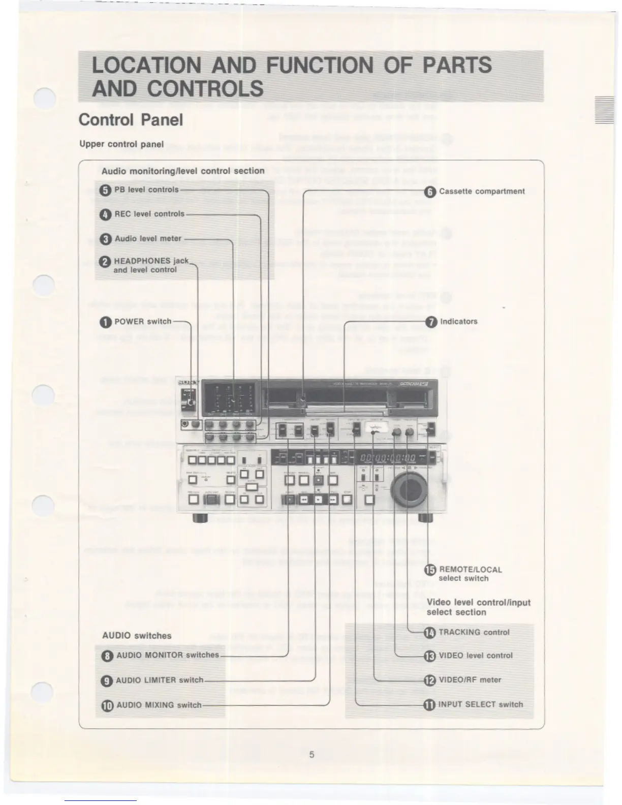 Sony BVW-75 - Control Panel Layout and Functions; Upper Control Panel Details