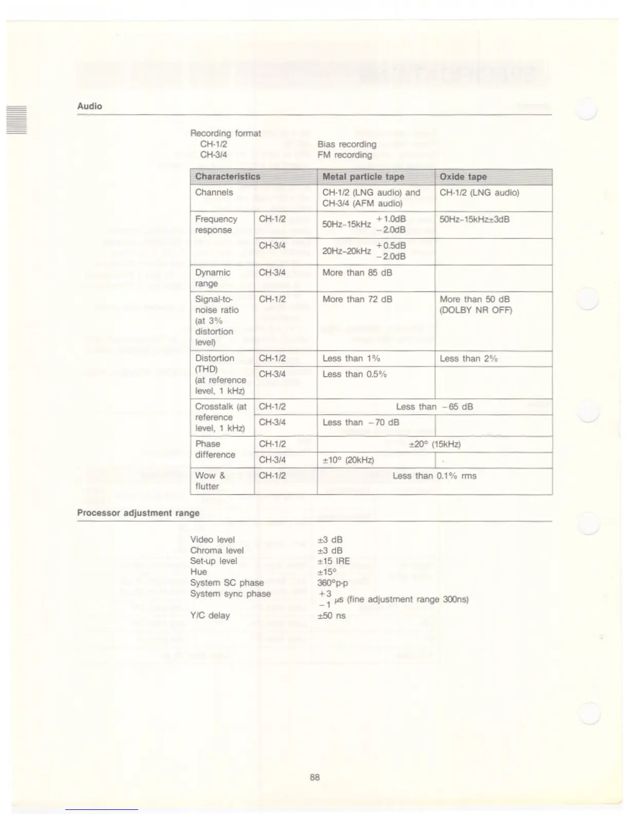 Sony BVW-75 - Processor Adjustment Range