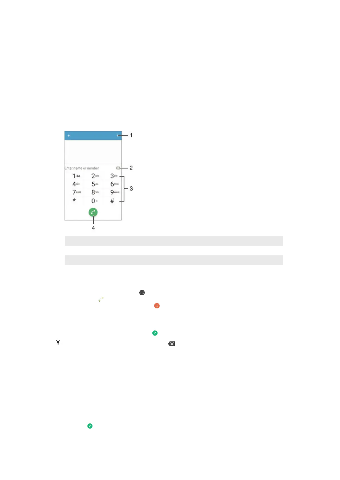 You can make a call by manually dialling a phone number, by tapping a number