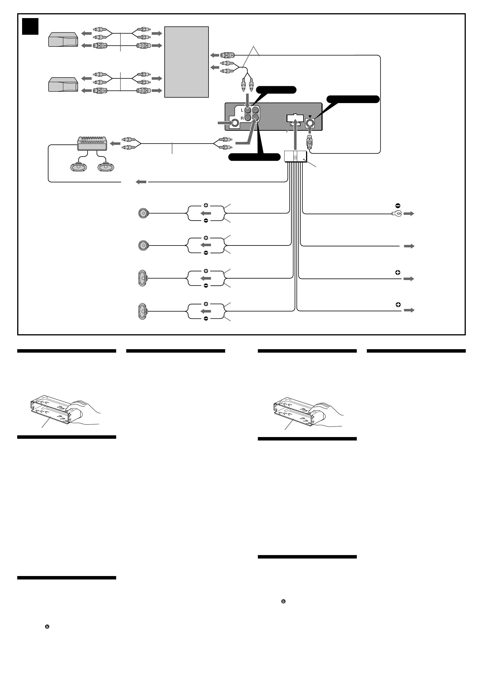 不要將揚聲器端子連接到汽車底盤上或將右揚聲器端