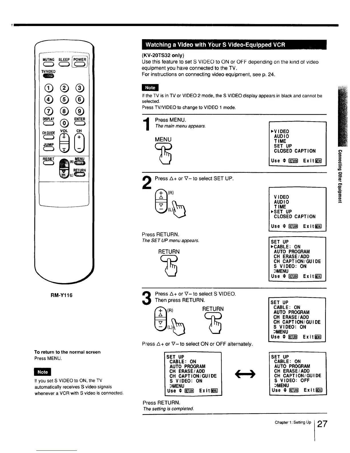 If you set S VIDEO to ON, the TV