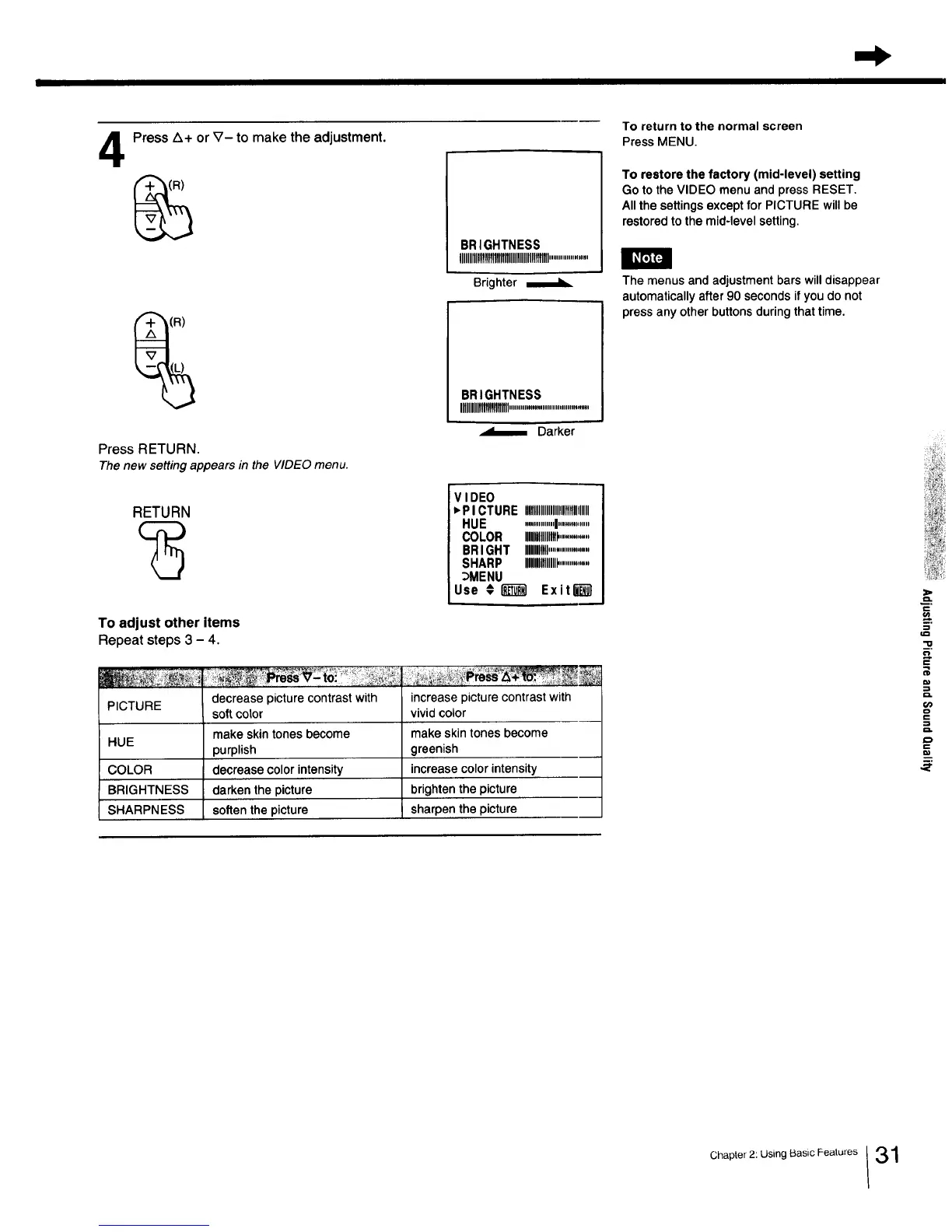 BRIGHTNESS darken the picture brighten the picture