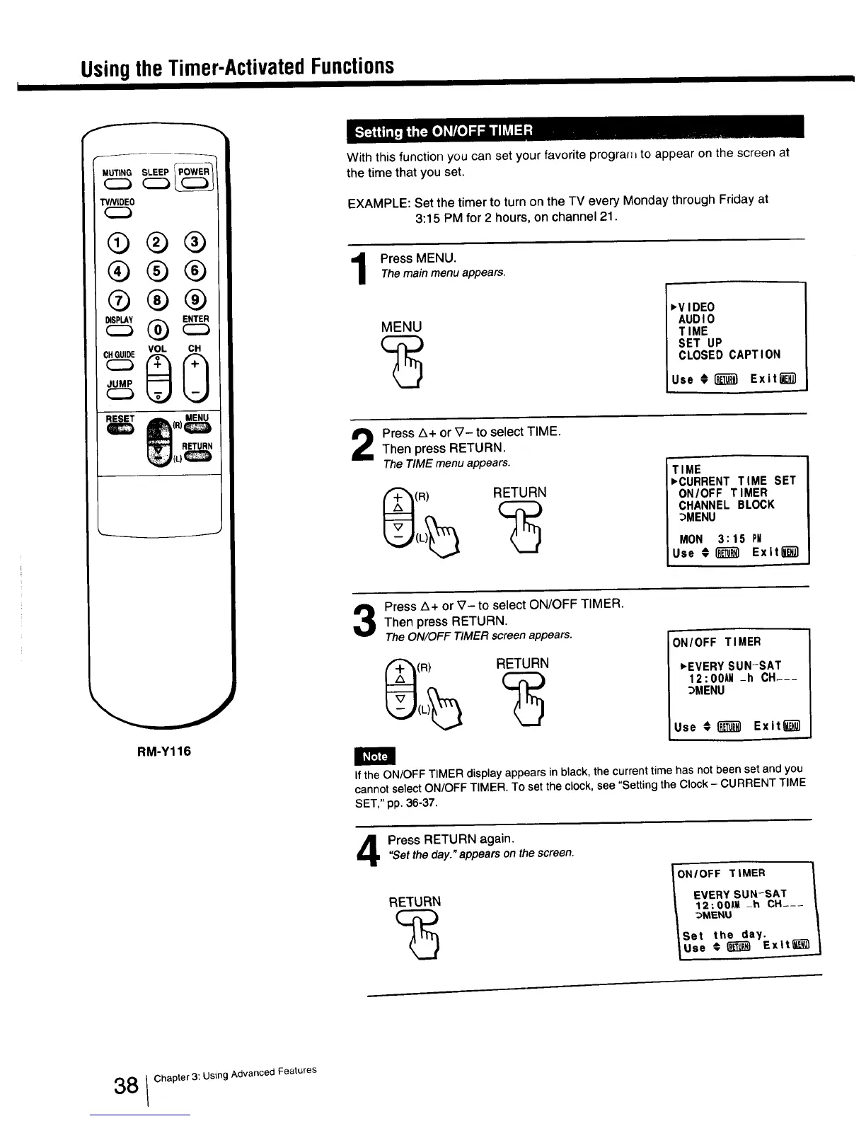 cannot select ON/OFF TIMER. To set the clock, see "Setting the Clock - CURRENT TIME