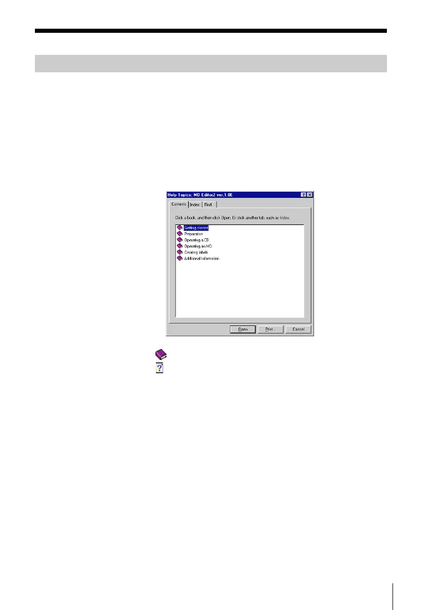 Opening the table of contents of Help