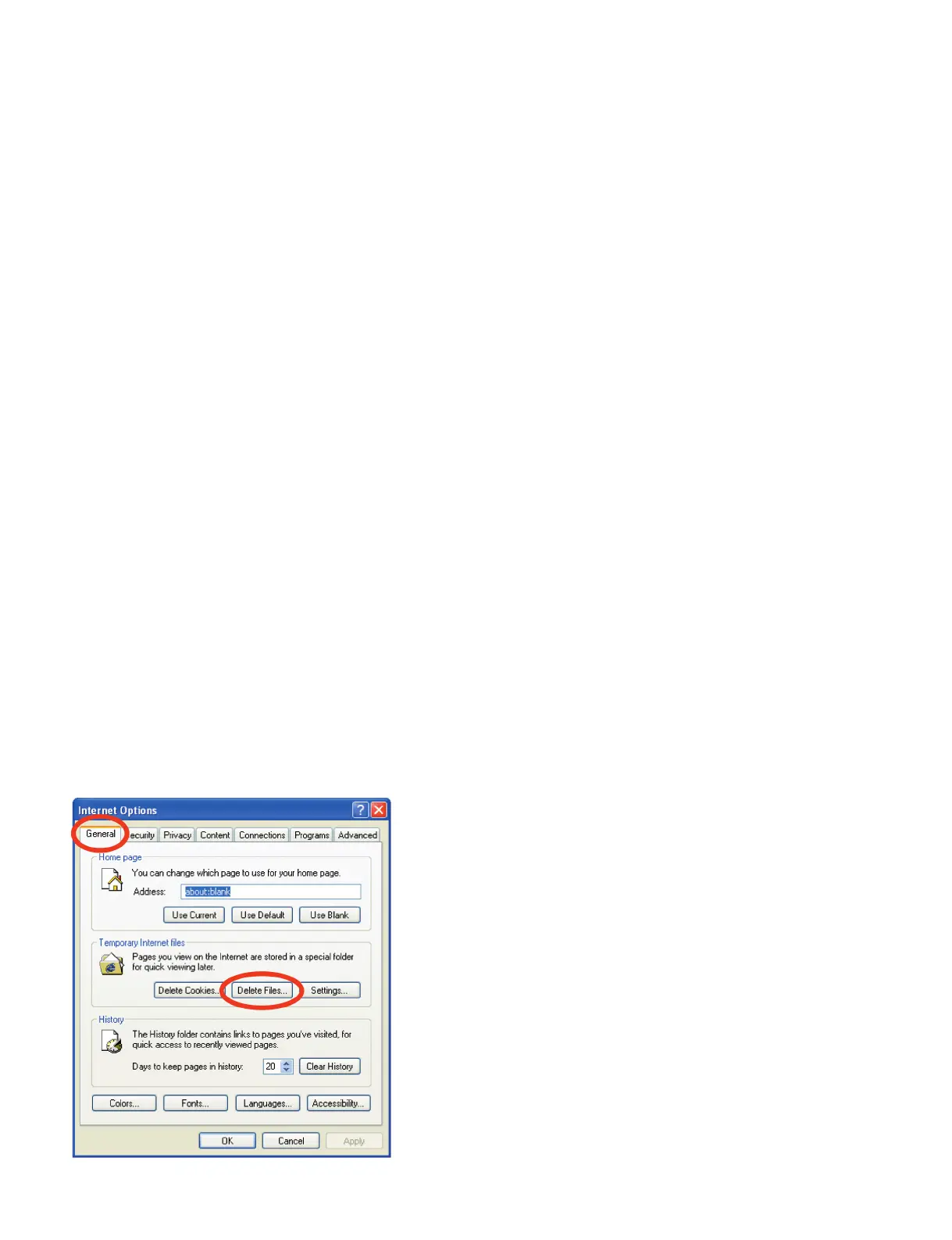 8. Click “Delete Files” on the “General” page to delete the Temporary Internet files.