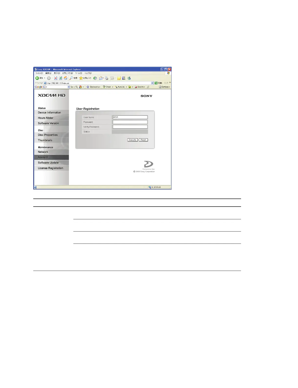 The user password for the XDCAM website can be changed on the Account page of the Maintenance