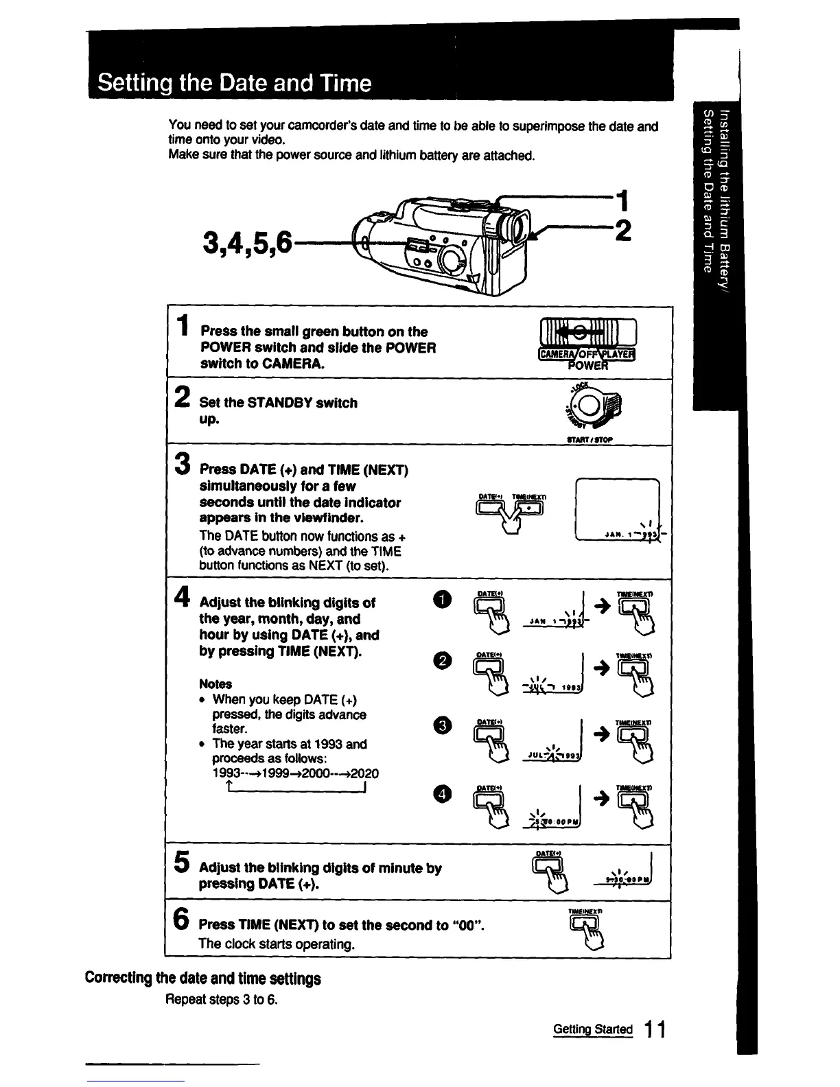 Sony CCD-FX420 - Date and Time Settings; Setting the Date and Time