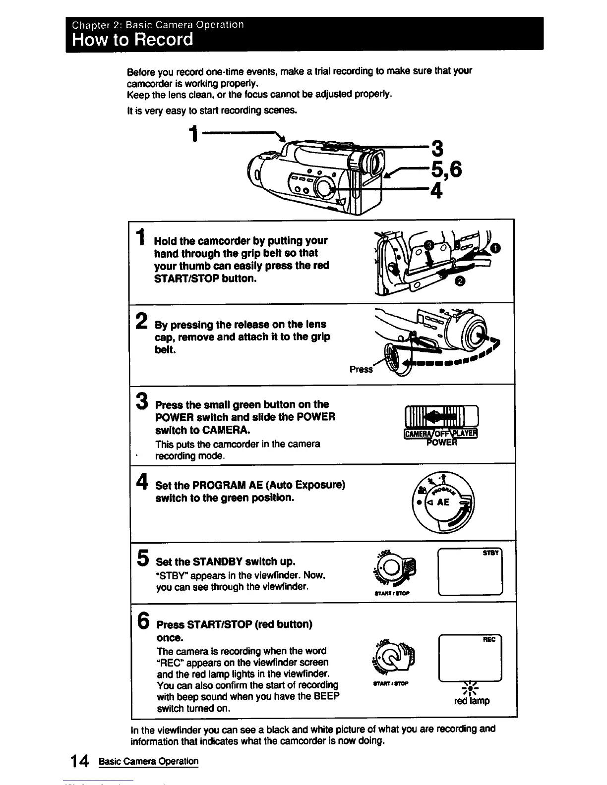 Sony CCD-FX420 - Basic Camera Operation; How to Record Video; Program AE (Auto Exposure)