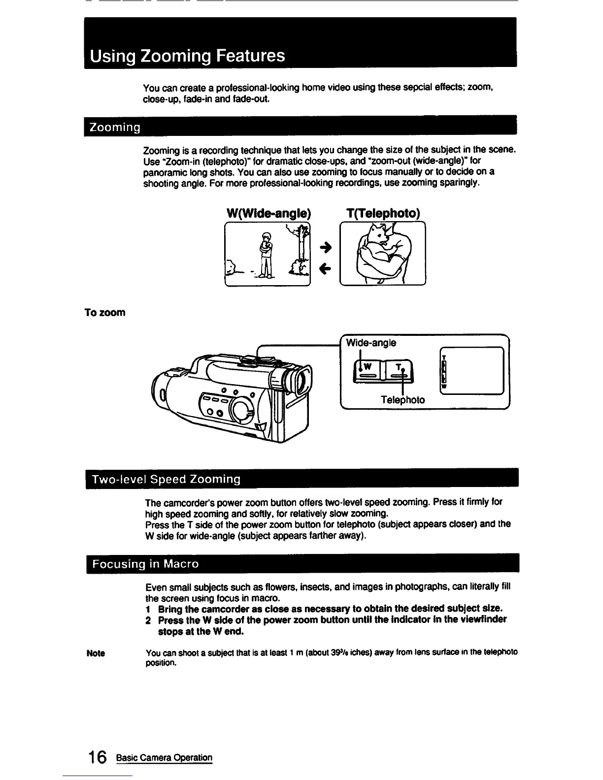 Sony CCD-FX420 - Zoom and Focus Features; Zooming Features; Two-level Speed Zooming; Macro Focusing