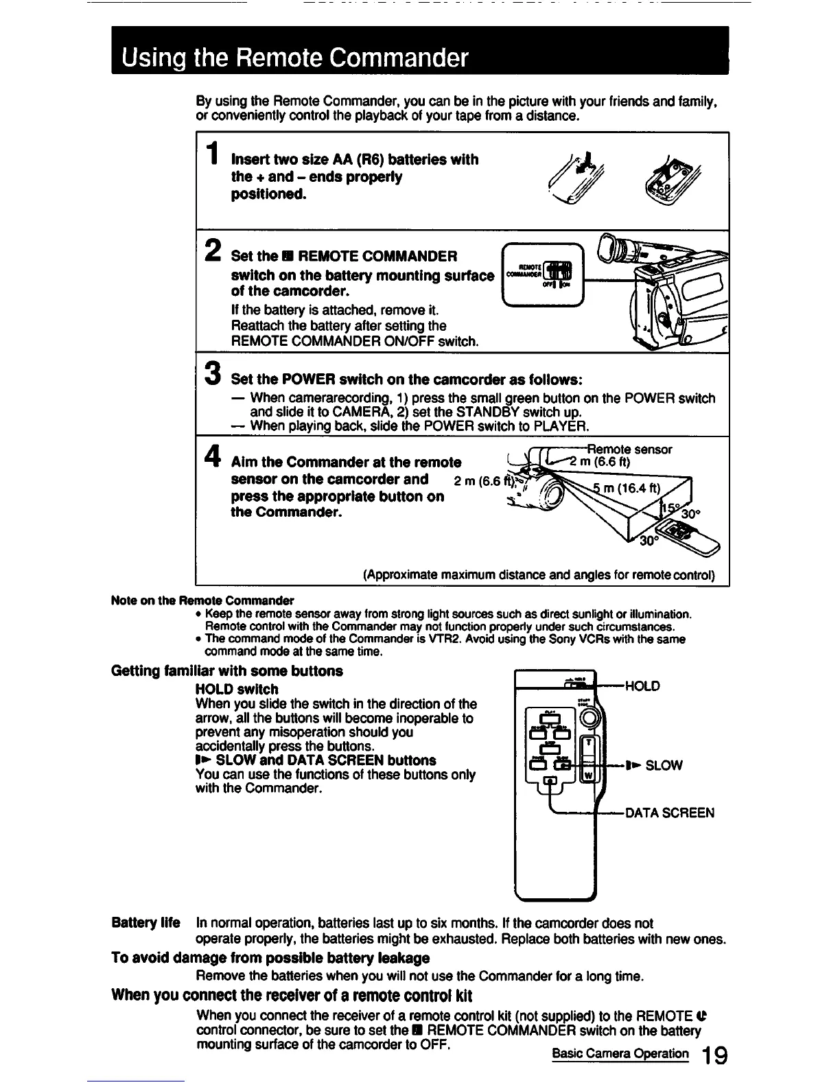 Sony CCD-FX420 - Remote Commander Usage; Using the Remote Commander
