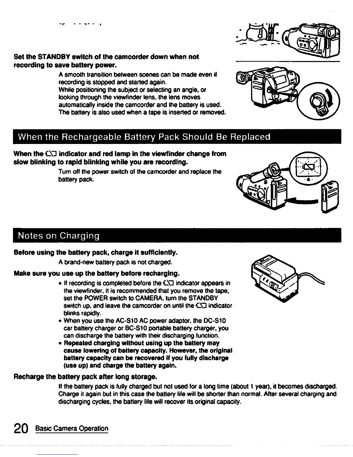 Sony CCD-FX420 - When the Rechargeable Battery Pack Should be Replaced; Notes on Charging