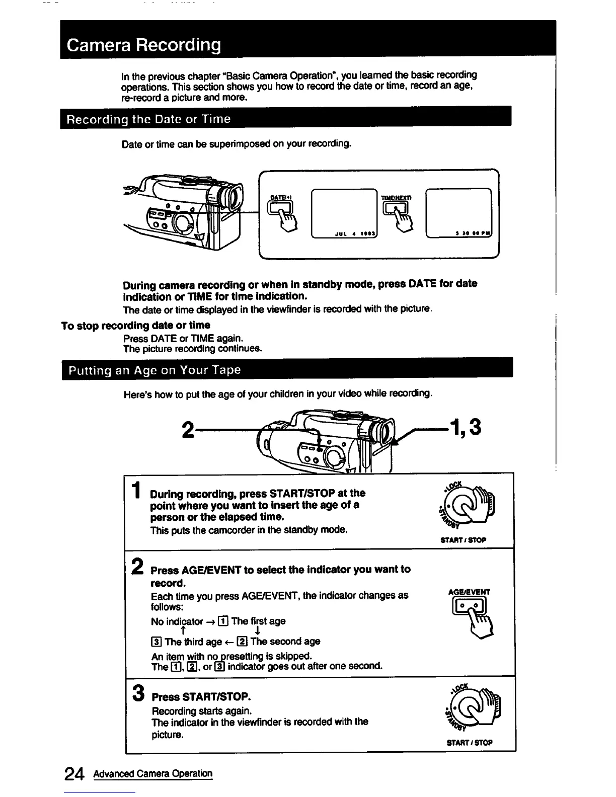 Sony CCD-FX420 - Advanced Recording Features; Recording Date or Time; Putting Age on Tape