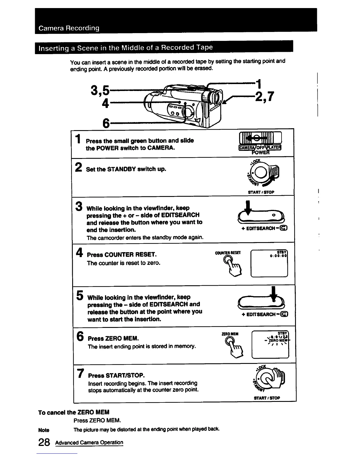 Sony CCD-FX420 - Inserting Scenes into Tapes; Inserting a Scene in the Middle of Tape
