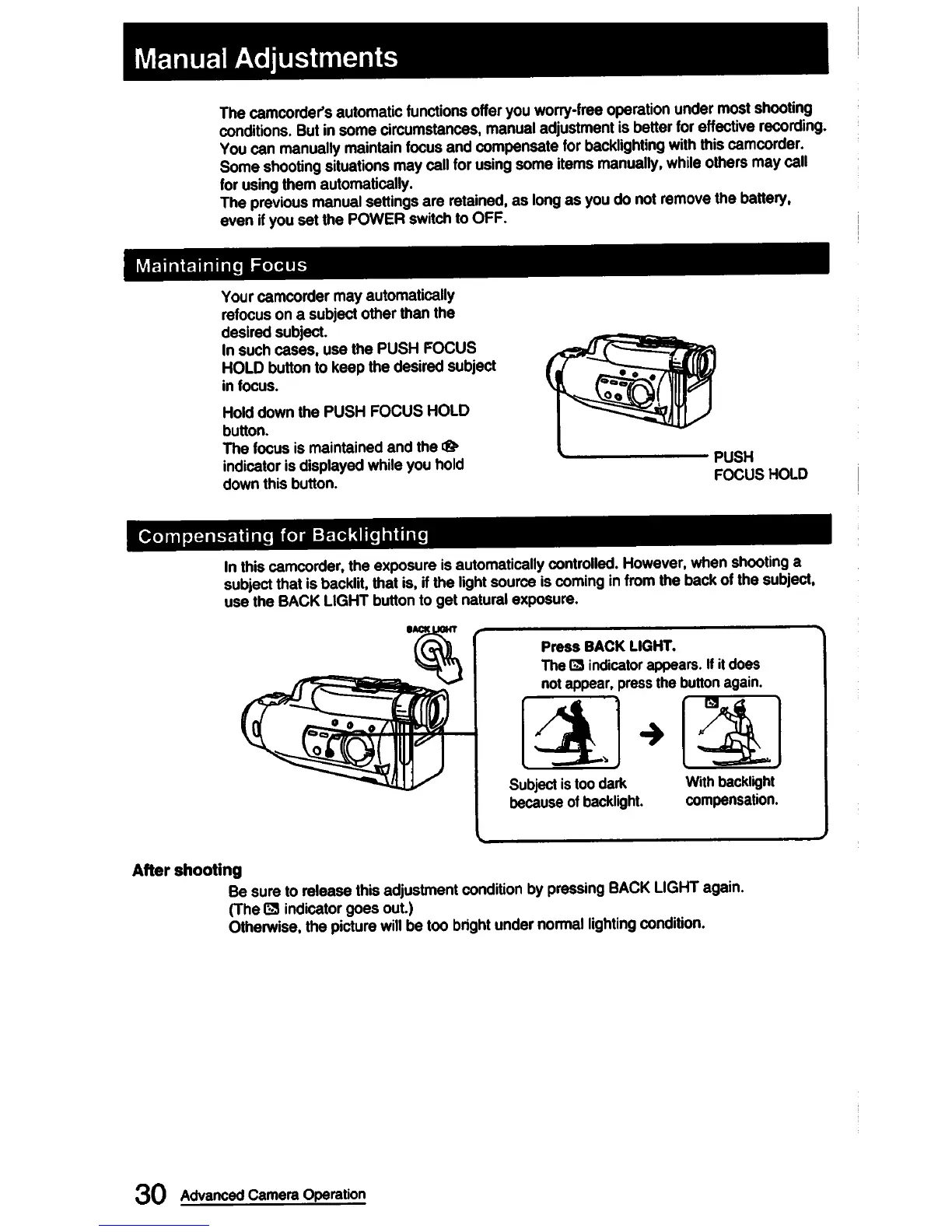 Sony CCD-FX420 - Manual Camera Adjustments; Maintaining Focus; Backlight Compensation