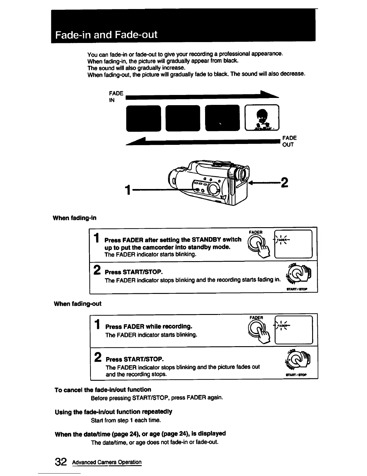 Sony CCD-FX420 - Fade Effects; Fade-in and Fade-out