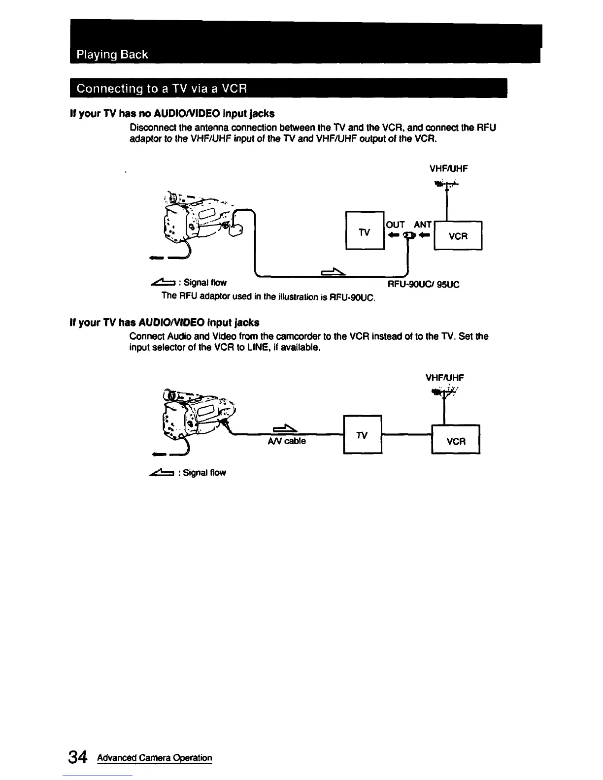 Sony CCD-FX420 - Connecting to a TV Via a VCR; If Your TV Has no Audio;Video Input Jacks; If Your TV Has Audio;Video Input Jacks