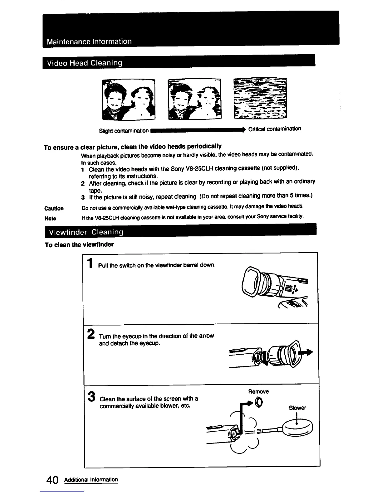 Sony CCD-FX420 - Cleaning and Maintenance; Video Head Cleaning