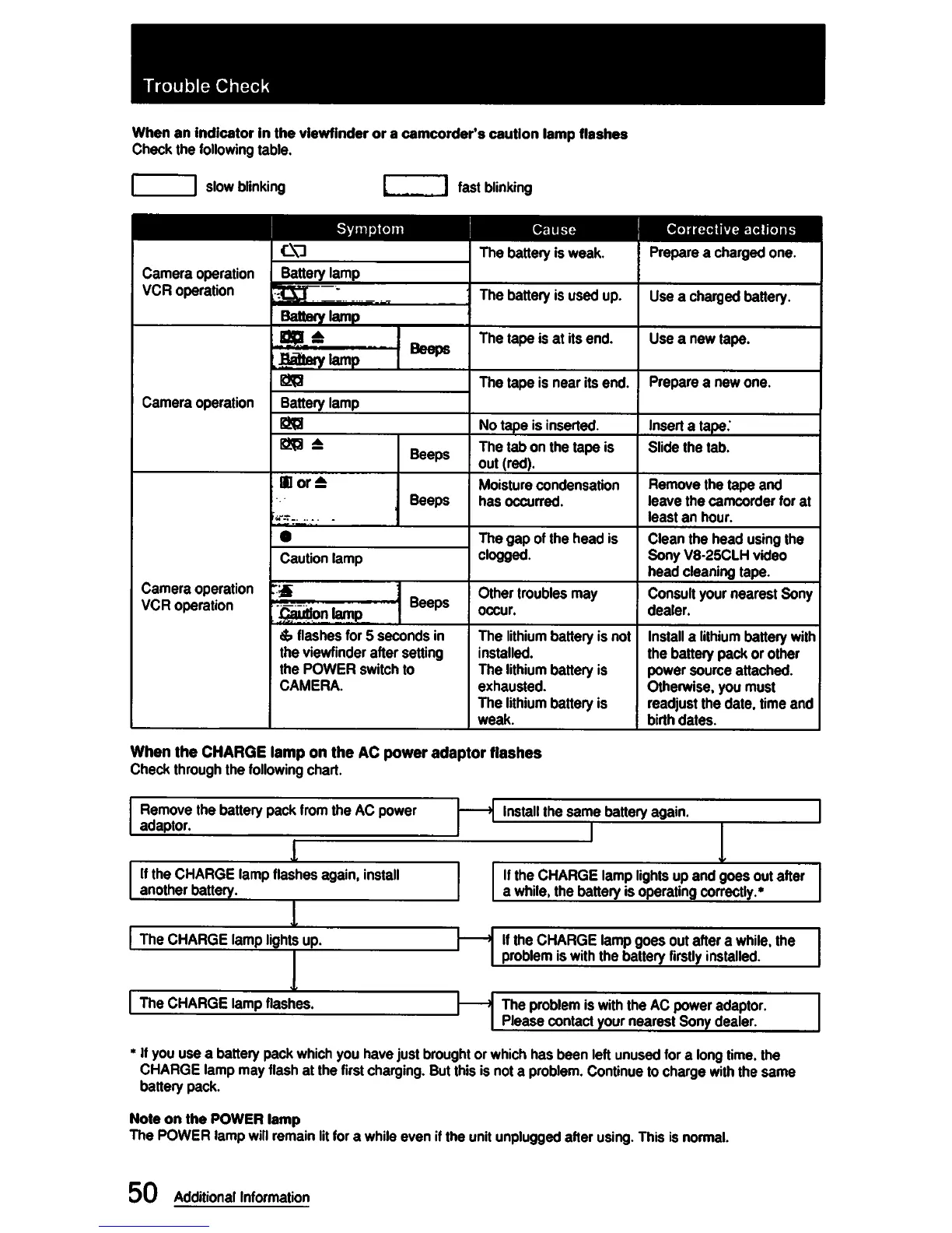 Sony CCD-FX420 - Troubleshooting Indicators; Indicator and Caution Lamp Troubleshooting