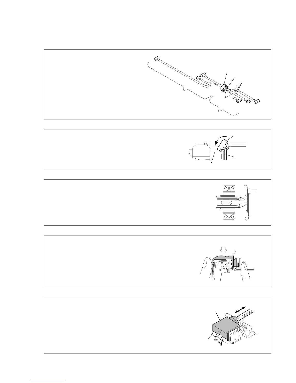 Be sure that the harness can move at the entrance/exit of the hinge assembly.