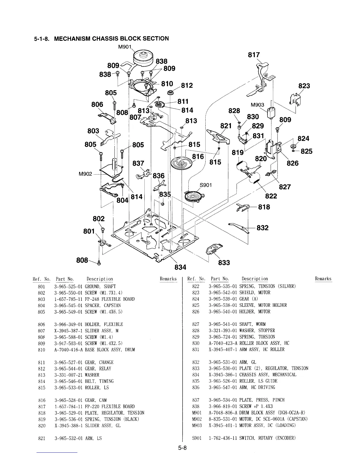 Sony CCD-TR330E - Mechanism Chassis Block Section Parts