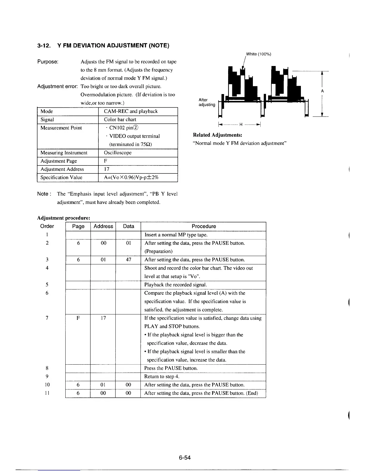 Sony CCD-TR330E - Y FM Deviation Adjustment(Note)