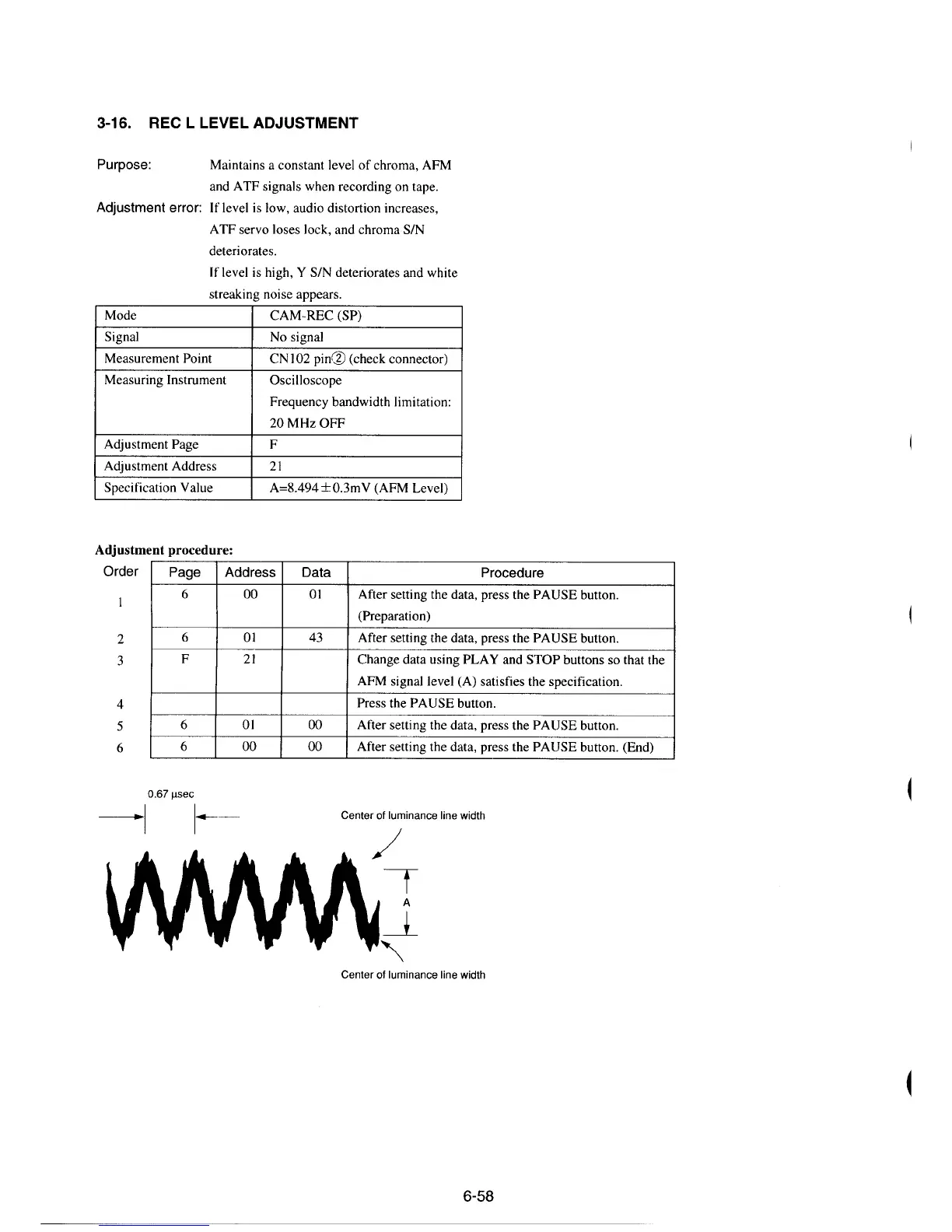 Sony CCD-TR330E - Rec L Level Adjustment