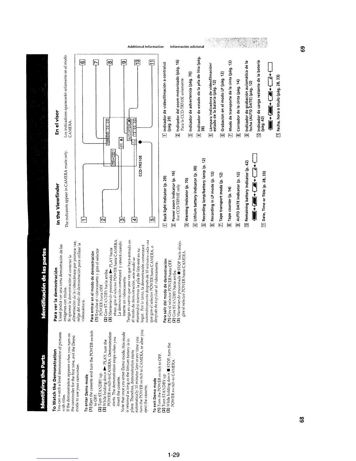Sony CCD-TR330E - To Watch the Demonstration; In the Viewfinder