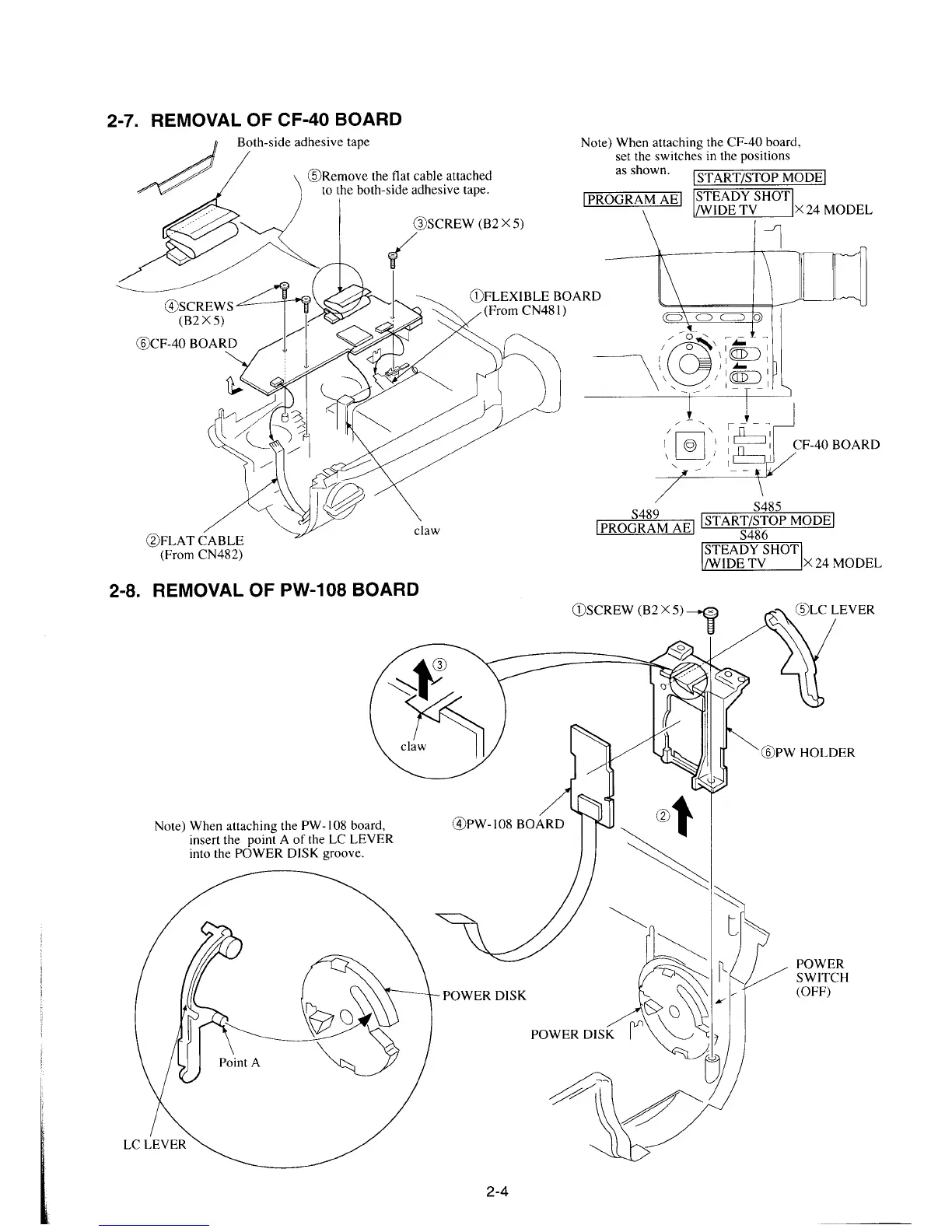 Sony CCD-TR330E - Removal of CF-40 Board; Removal of PW-108 Board
