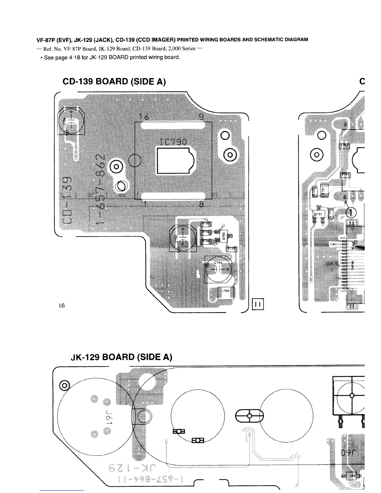 Sony CCD-TR510E - VF-87 P, JK-129, CD-139 Printed Wiring Boards and Schematic Diagram