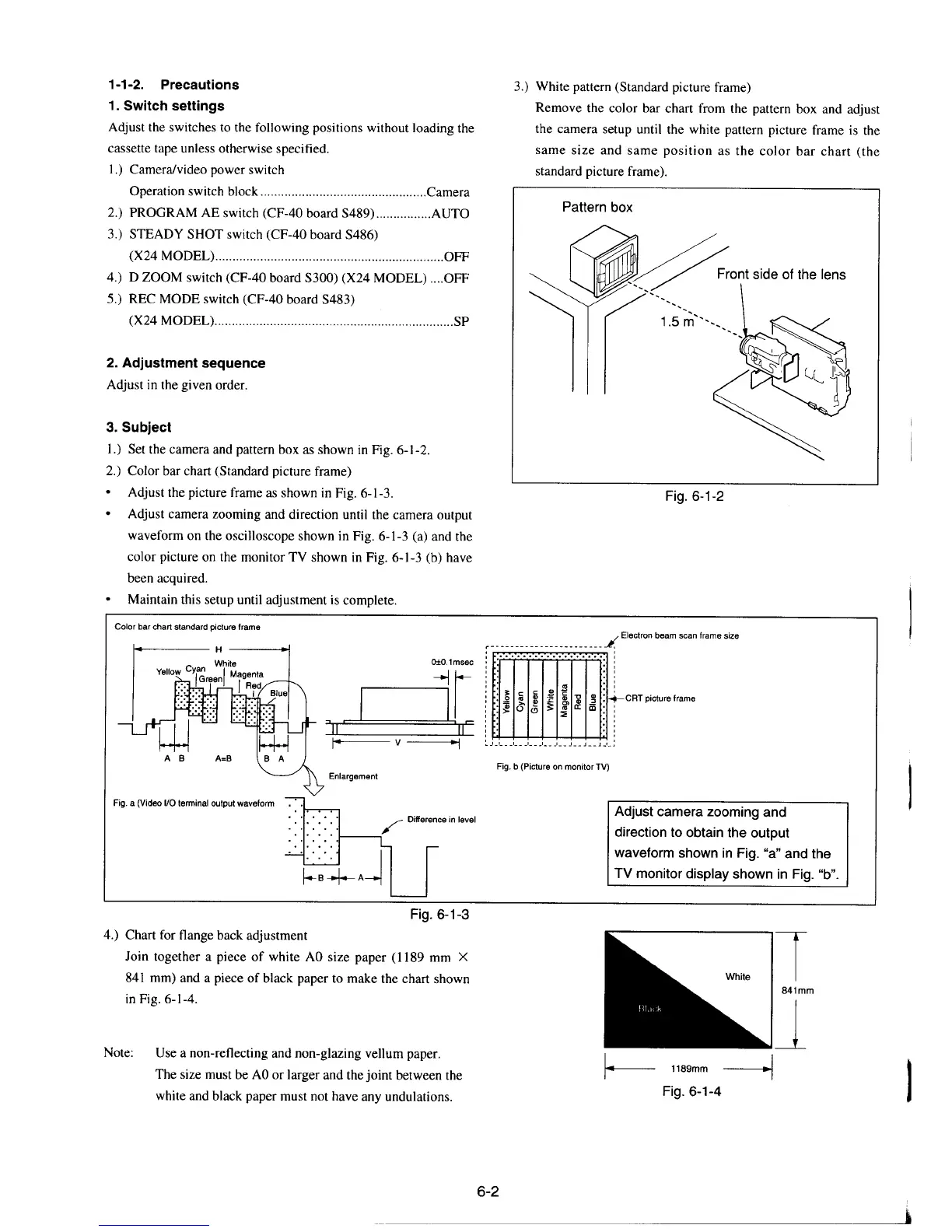 Sony CCD-TR510E - Camera Section Adjustment Switch Settings; Camera Section Adjustment Subject