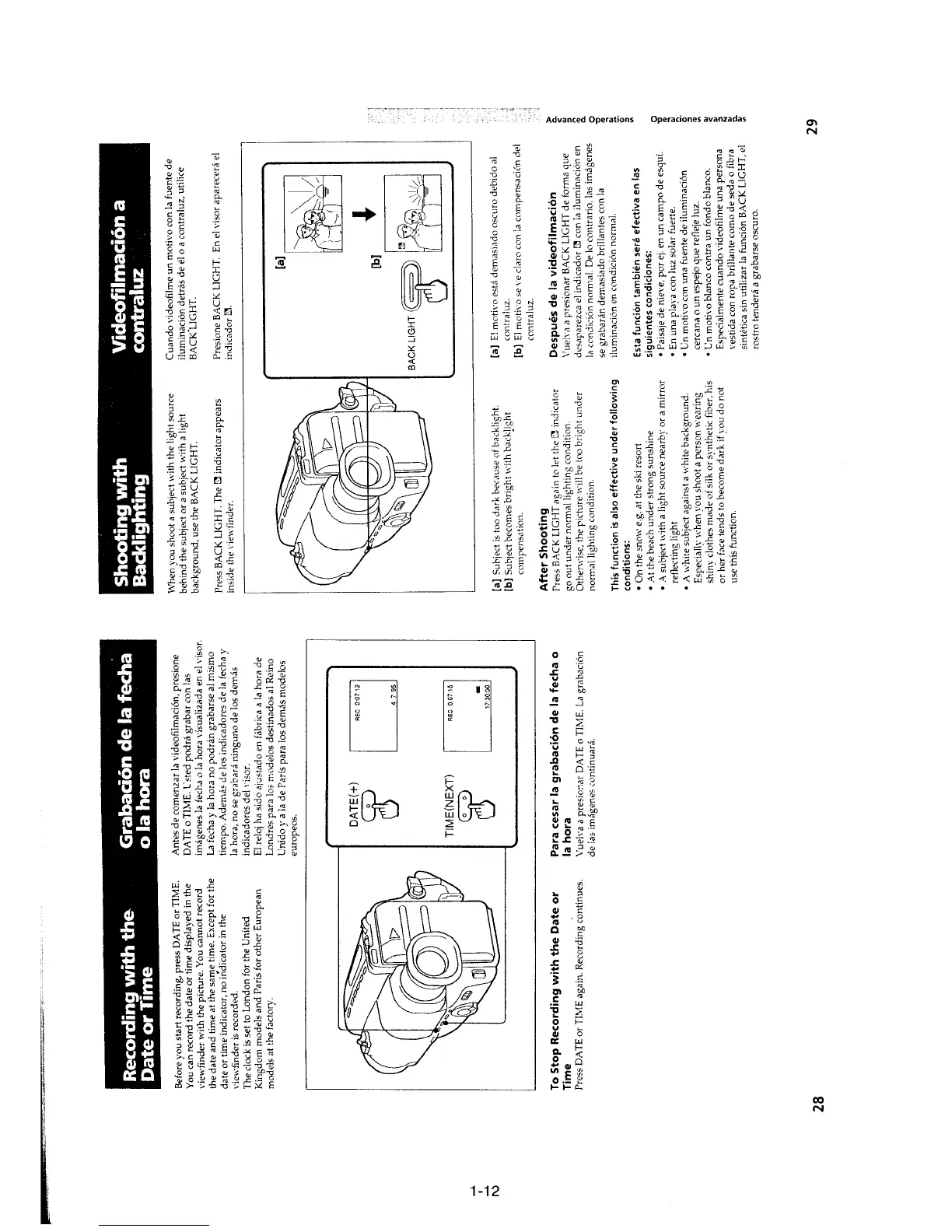 Sony CCD-TR510E - Shooting with Backlighting; Recording with the Date or Time