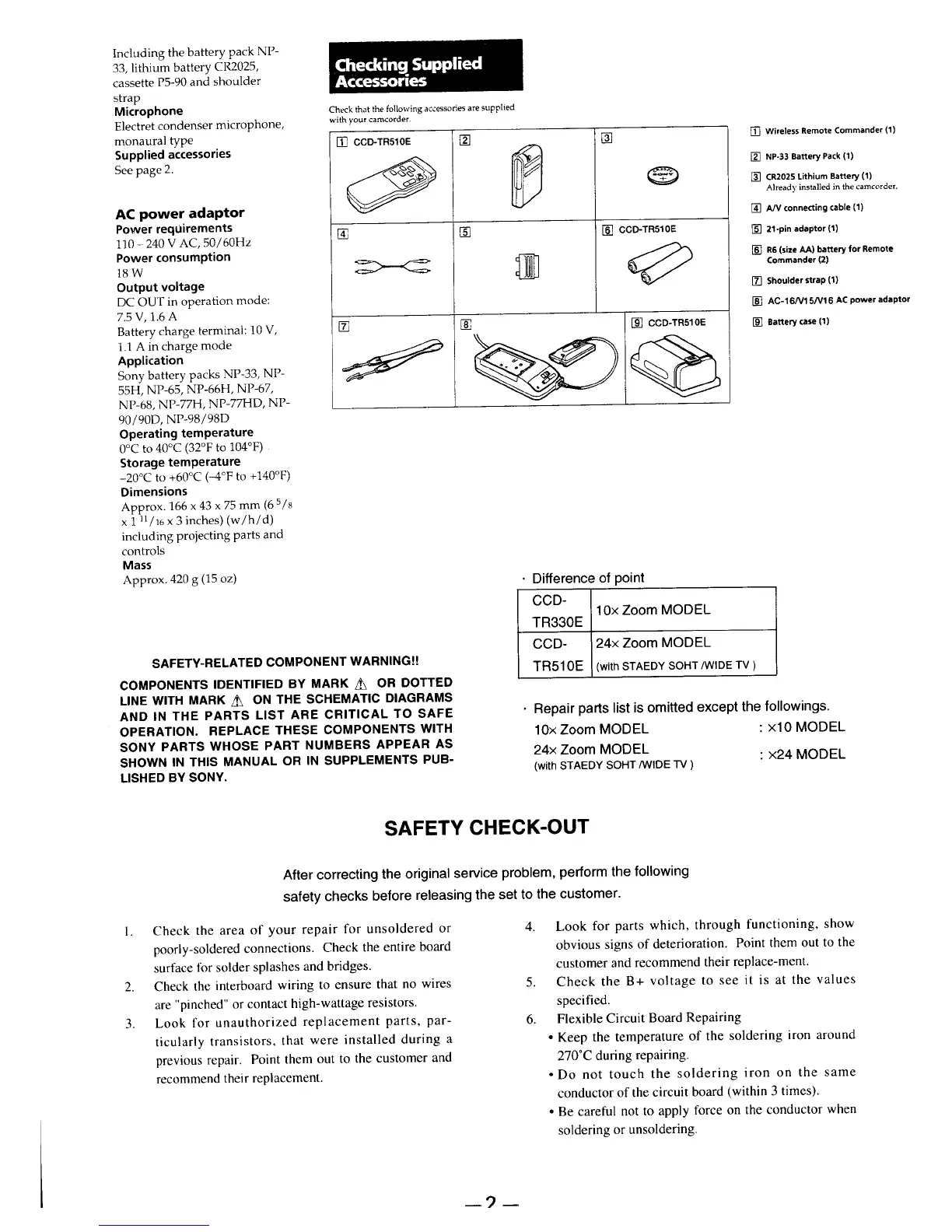 Sony CCD-TR510E - Checking Supplied Accessories; Safety Check-Out