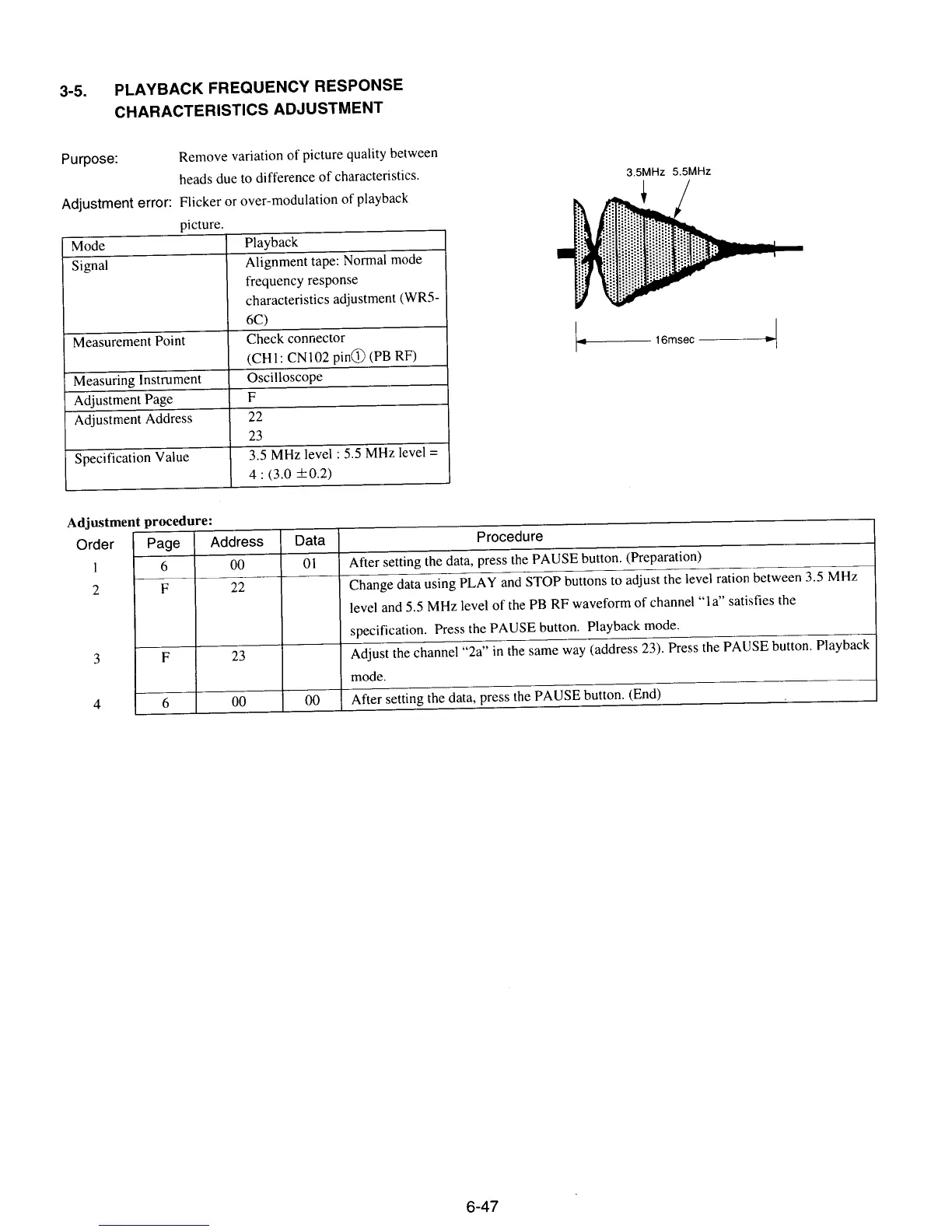 Sony CCD-TR510E - Playback Frequency Response Characteristics Adjustment