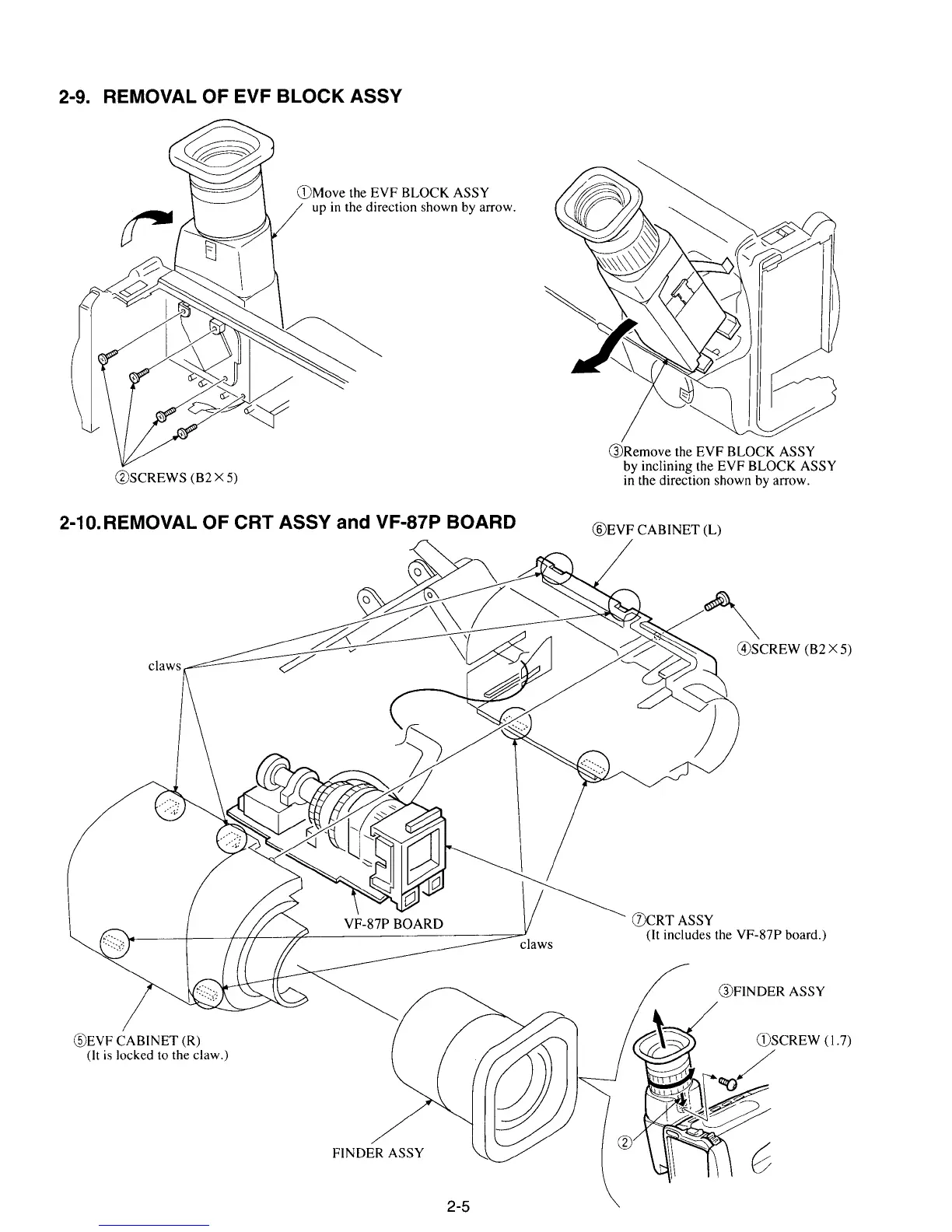 Sony CCD-TR510E - Removal of EVF Block Assy; Removal of CRT Assy and VF-87 P Board