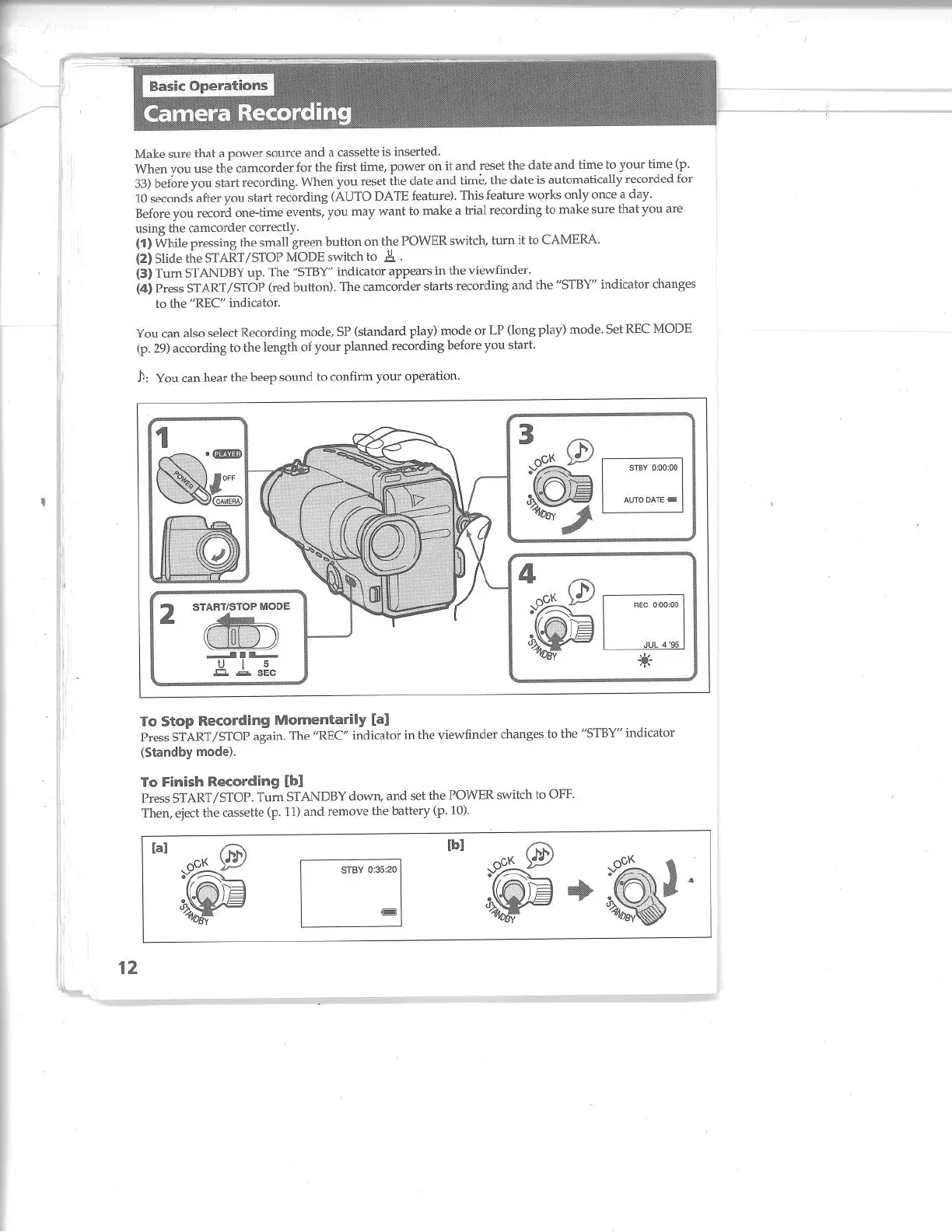 Sony CCD-TR74 - Basic Operations; Camera Recording