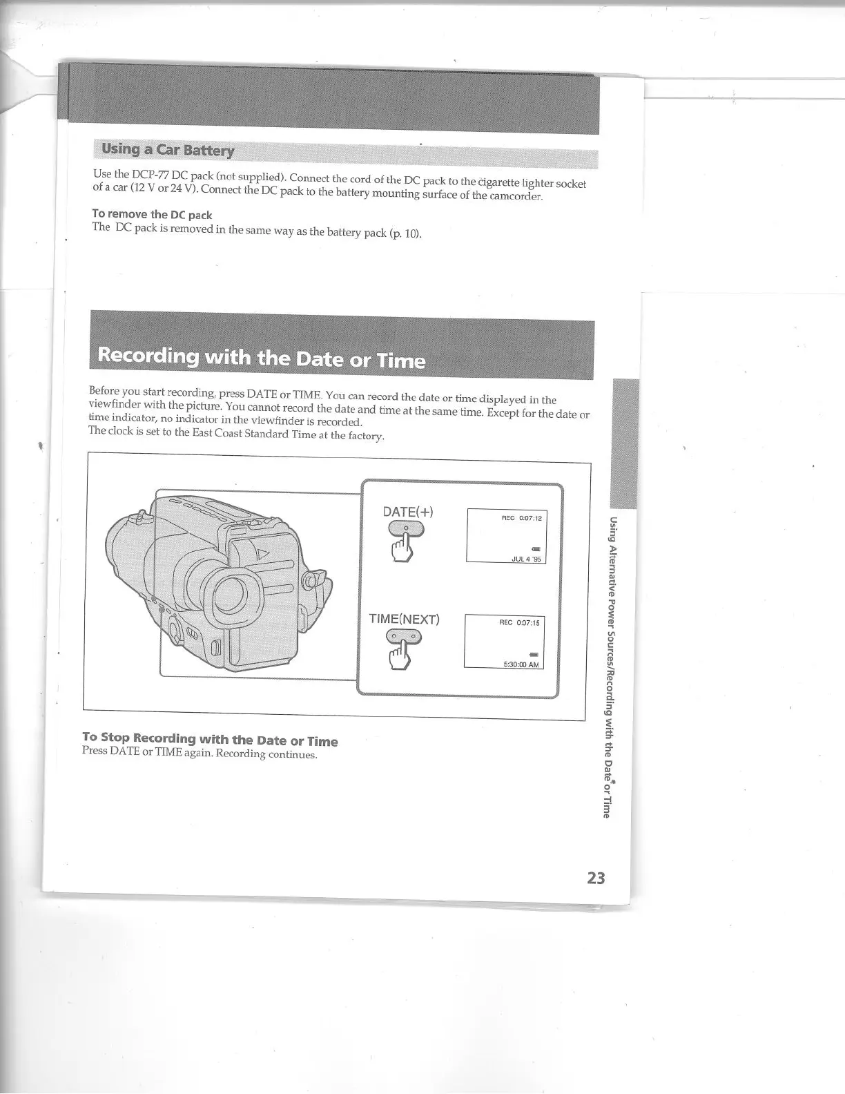 Sony CCD-TR74 - Recording with the Date or Time; Using a Car Battery
