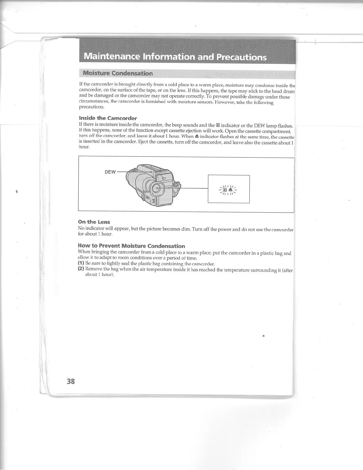 Sony CCD-TR74 - Maintenance and Precautions; Preventing Moisture Condensation