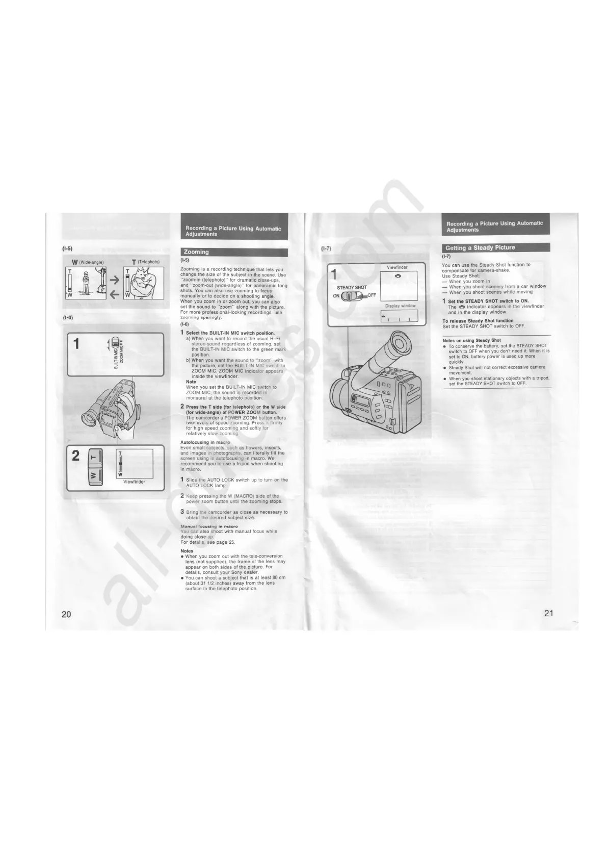 Sony CCD-TR805E - Zooming Techniques; Getting a Steady Picture