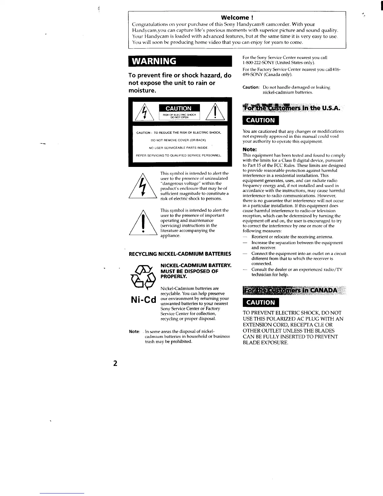 Sony CCD-TR86 Operating Instructions (primary manual) - Page 2