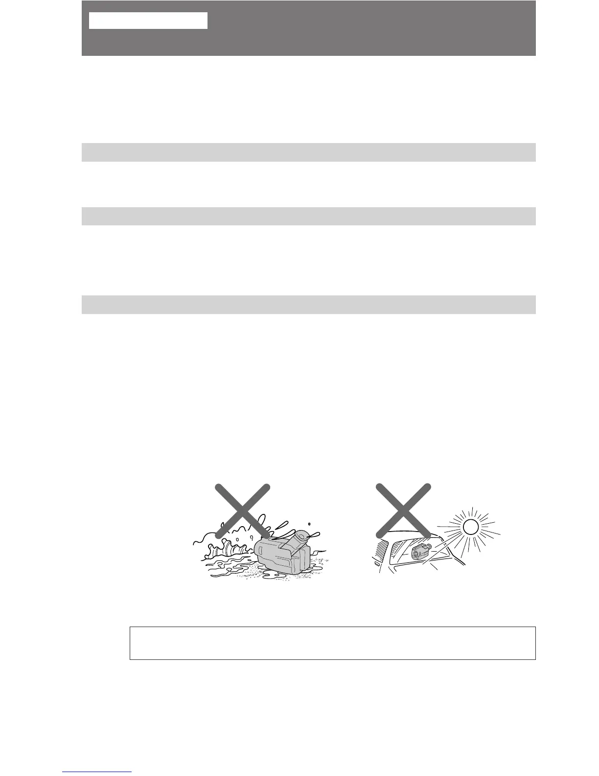 Letting the camcorder get wet may cause the unit to malfunction, and sometimes this
