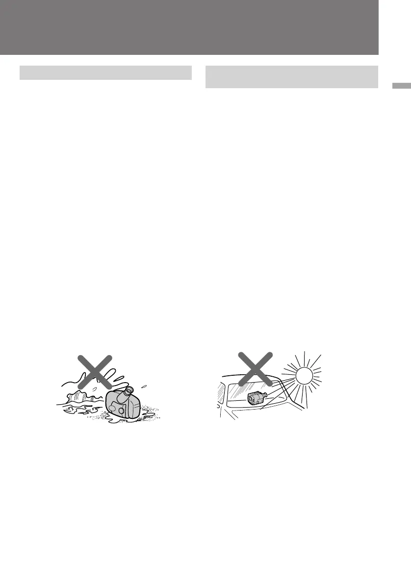 • Do not let the camcorder get wet. Keep the